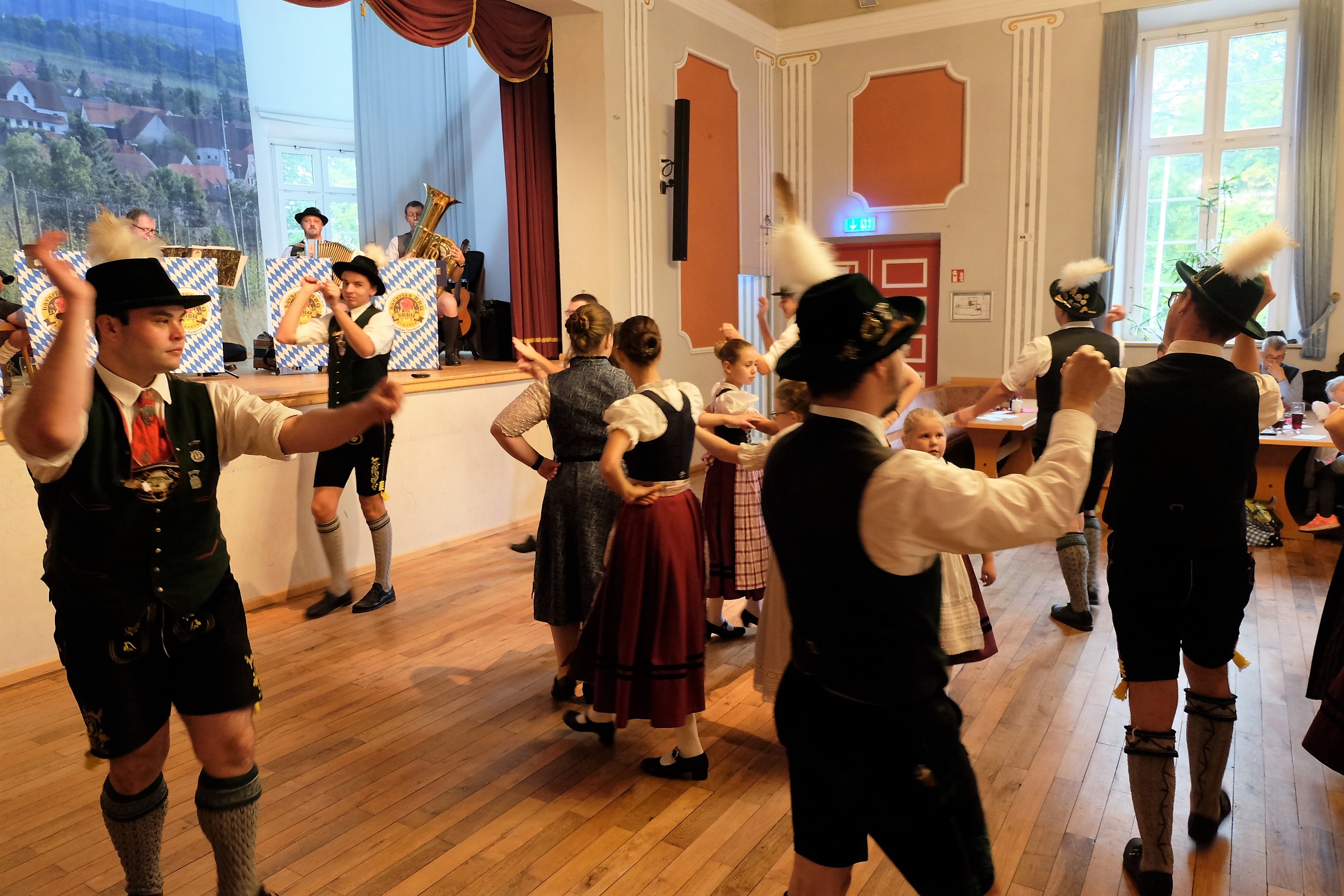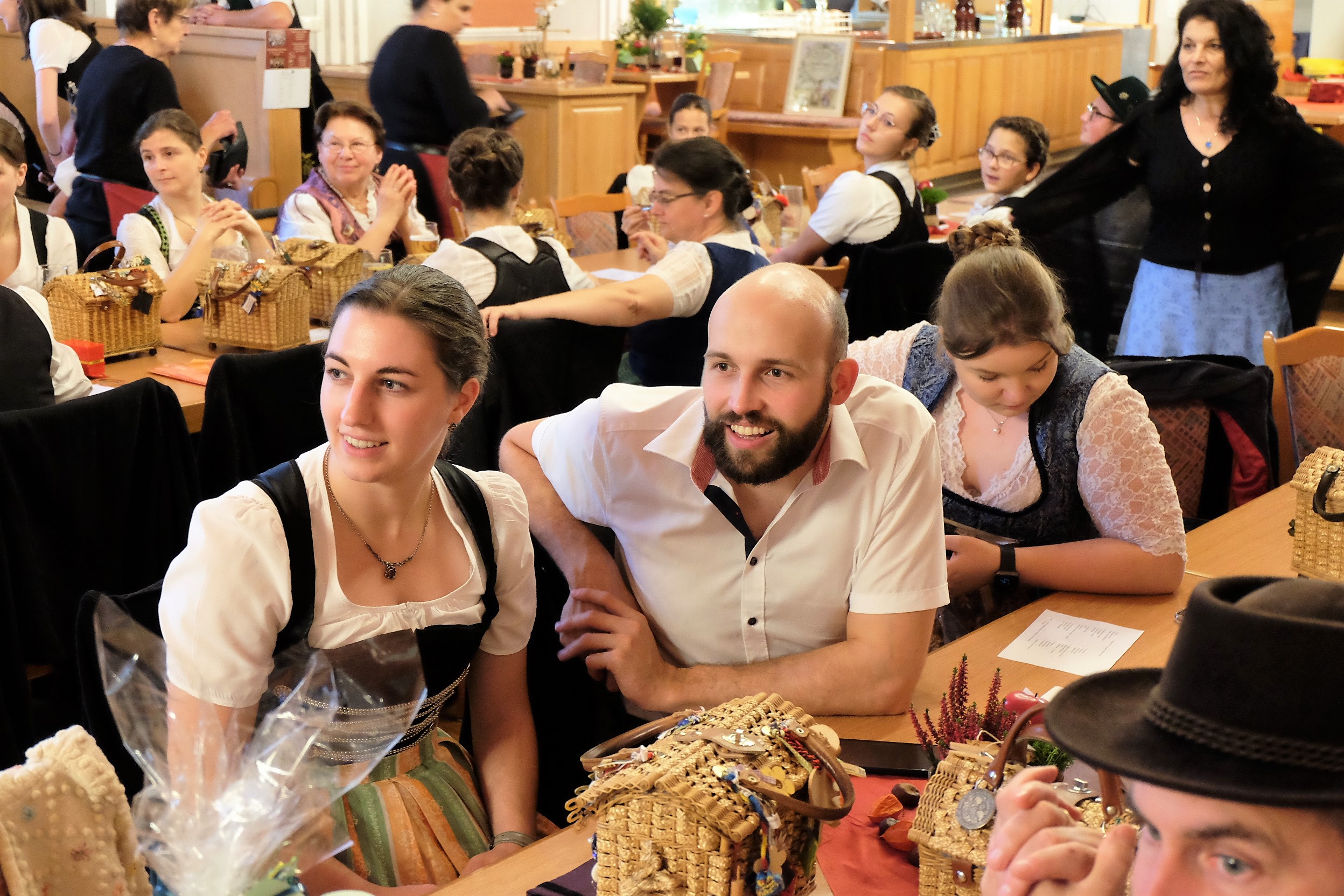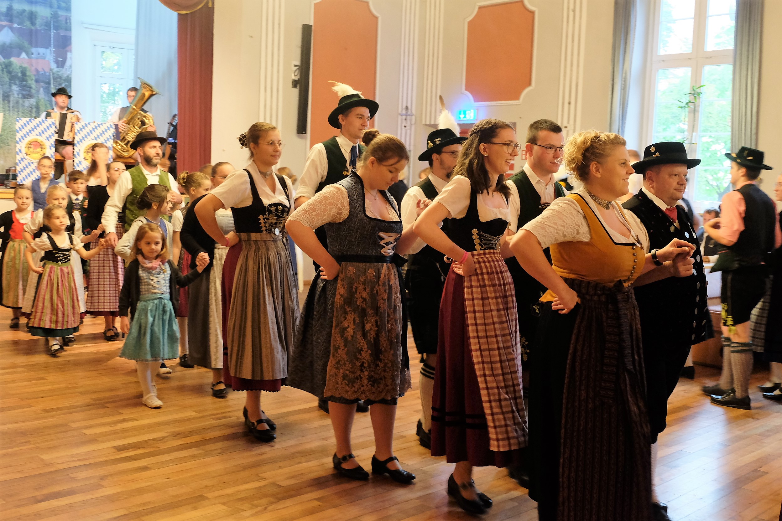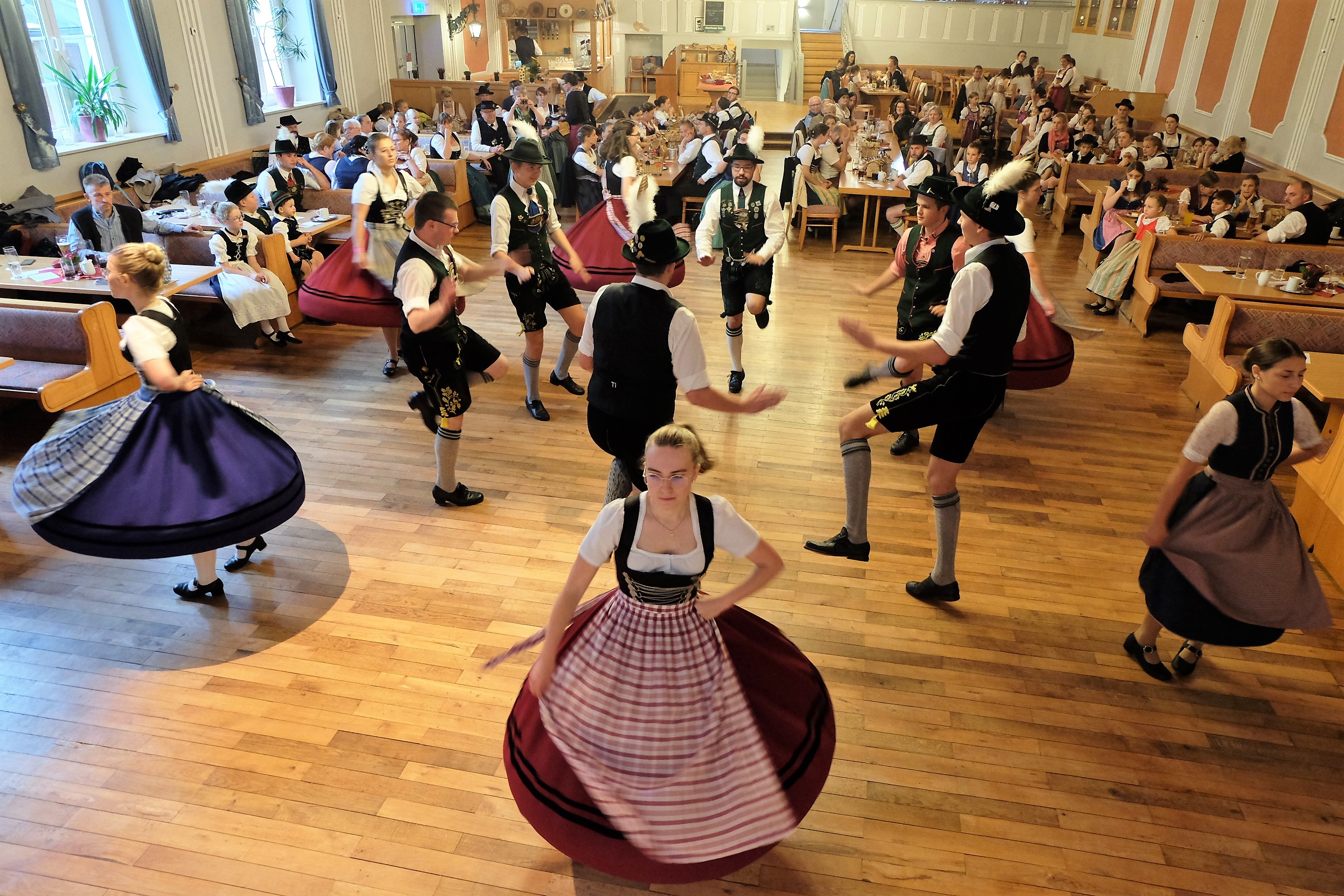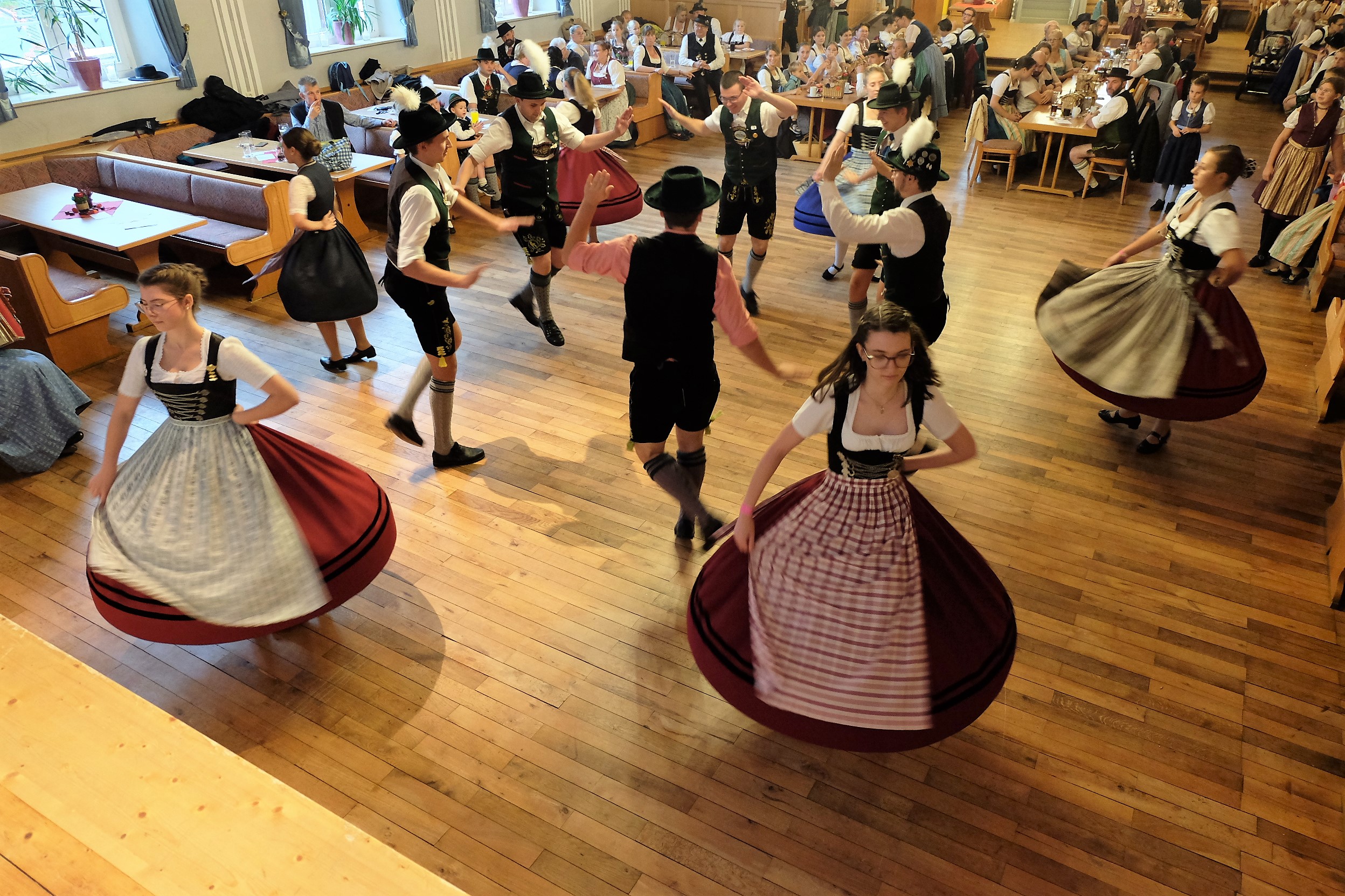 113 Deandln und Buam aus 17 Gauvereinen hatten sichtlich Spaß und Freude, sich endlich wieder zu einem Nachmittags-Volkstanz zu treffen. Da man die Musik bis auf Siegenburgs Straßen hören konnte, nahmen auch spontan Spaziergänger an der Tanzveranstaltung teil. Neben dem Tanzen und Platteln, kam das gemeinsame Spielen und singen auch nicht zu kurz. In der Pause zeigte die Gaujugendgruppe ihr Können. Gaujugendvertreterin Andrea Betz organisierte mit ihrem Jugendkomitee noch ein Rätsel mit diversen Fragen über das Trachtenkulturzentrum in Holzhausen und über unseren Donaugau. Hier hatten auch alteingesessene Trachtler kleine Schwierigkeiten, die Fragen zu beantworten. An dieser Stelle noch ein herzliches Vergelt´s Gott an den Trachtenverein Siegenburg für das ausgezeichnete Kuchenbüfett.