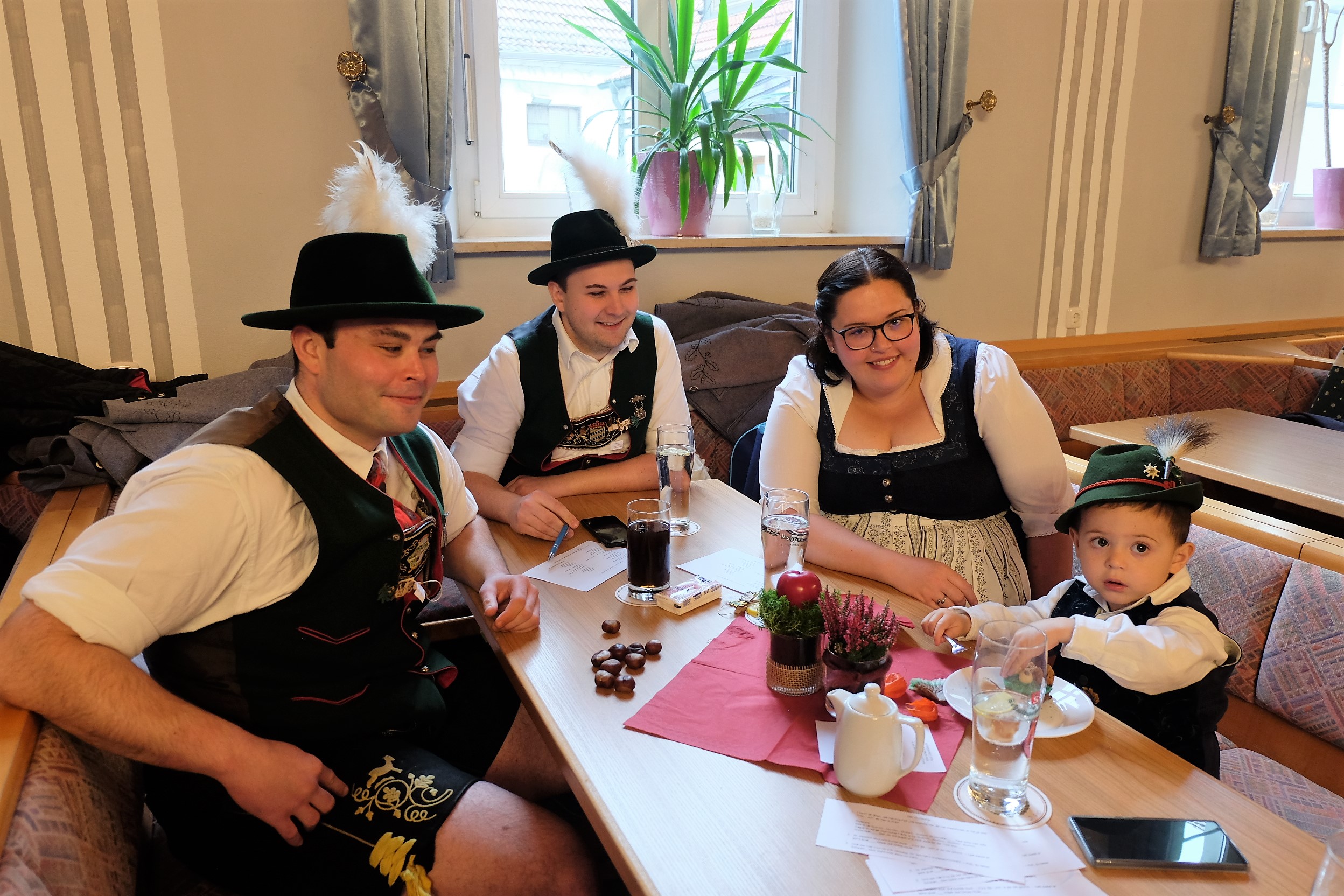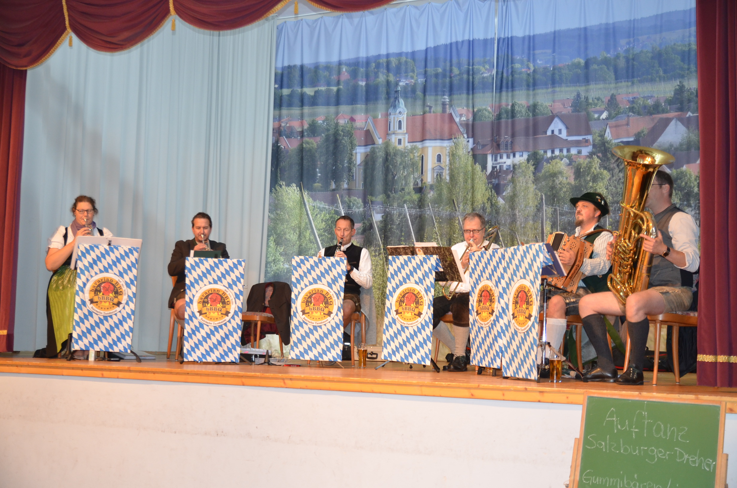 Die bayerische Tanzlmusi „Blech-Bläser-Quantett“ spielte im Wittmannsaal in Siegenburg zum Jugendvolkstanz des Donaugau-Trachtenverbandes auf.