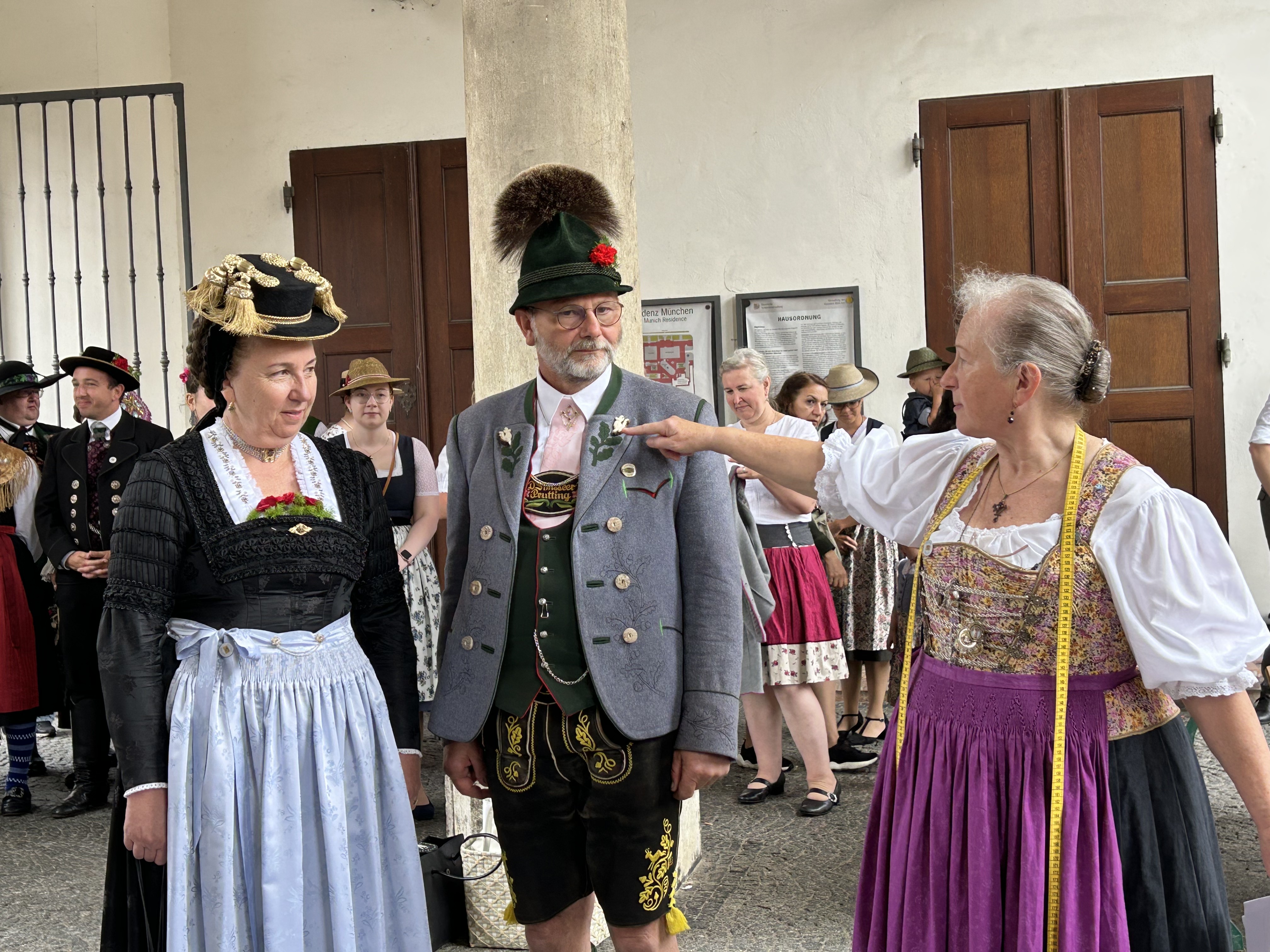 Finanz- und Heimatminister Albert Füracker kam zum Pressetermin des Bayerischen Trachtenverbandes e.V. und des Bayerischen Landesvereins für Heimatpflege e.V. aus Anlass des Tags der Tracht in den Brunnenhof. „Tracht ist Heimat! Dirndl und Lederhosen gehören untrennbar zu Bayern – sie verkörpern Lebensfreude, Tradition und bayerische Gemütlichkeit. Heute ist es zum zweiten Mal soweit – der Tag der Tracht bringt bayerische Tradition zum Strahlen! Hinter unseren Trachten stecken Geschichten von Handwerkskunst und regionalen Besonderheiten. Ob beim Volksfest, bei besonderen Anlässen oder im Alltag – die Tracht stärkt unser Gemeinschaftsgefühl und unsere Identität. Seit letztem Jahr feiern wir am 14. Juli den Tag der Tracht, um unsere Wurzeln zu würdigen und die Vielfalt bayerischer Trachten zu präsentieren.“, so der Heimatminister in seiner Ansprache.