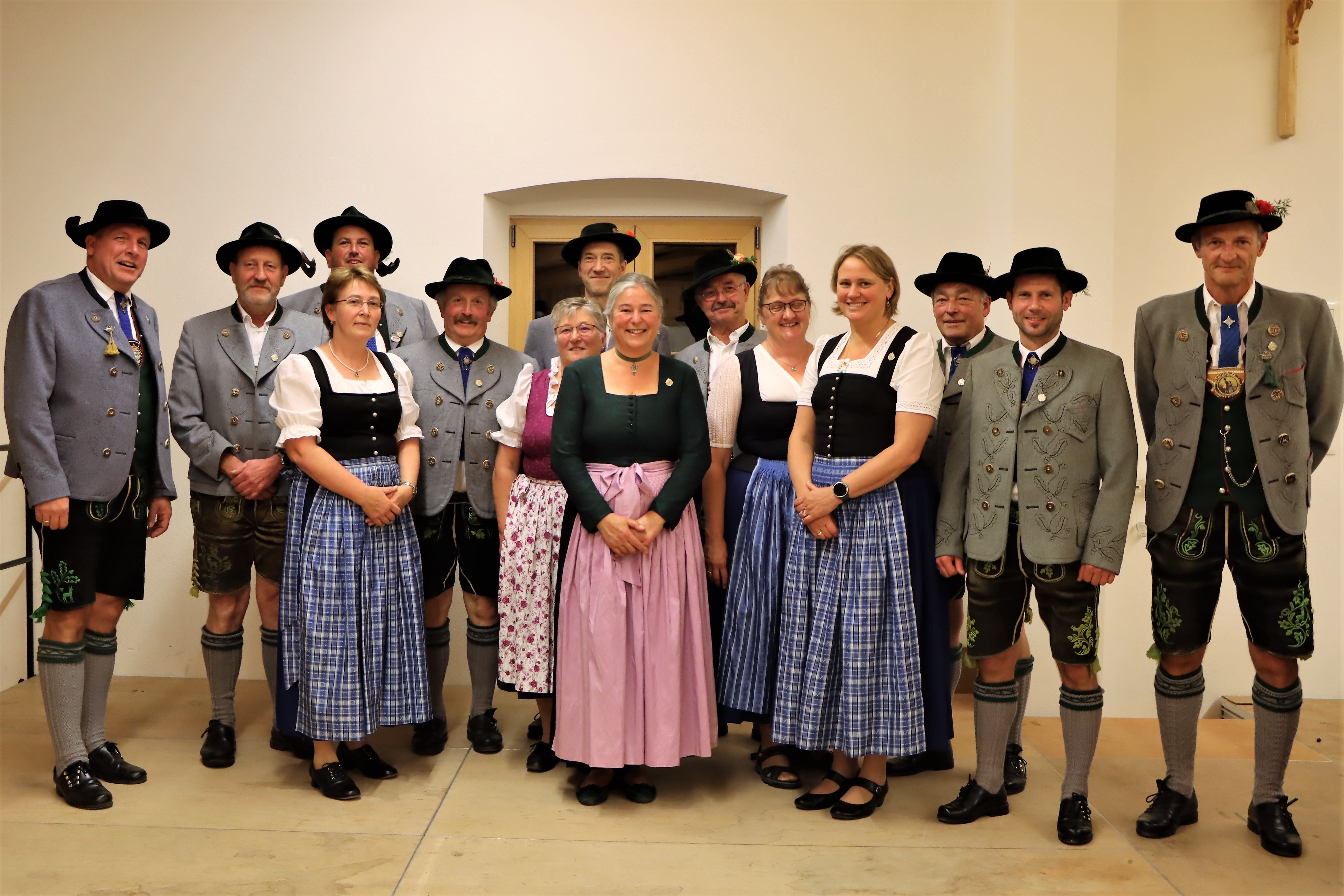 Beim gemütlichen Vereinsabend mit Musik und Tanz Mitte September freute sich 1. Vorstand Paul Miller gemeinsam mit seinem Stellvertreter Florian Gams besonders, zwölf Mitgliedern mit einer Ehrennadel für Ihre langjährige Verbundenheit zum Verein und ihr Bekenntnis zu Brauchtum und zur Trachtensache zu danken.