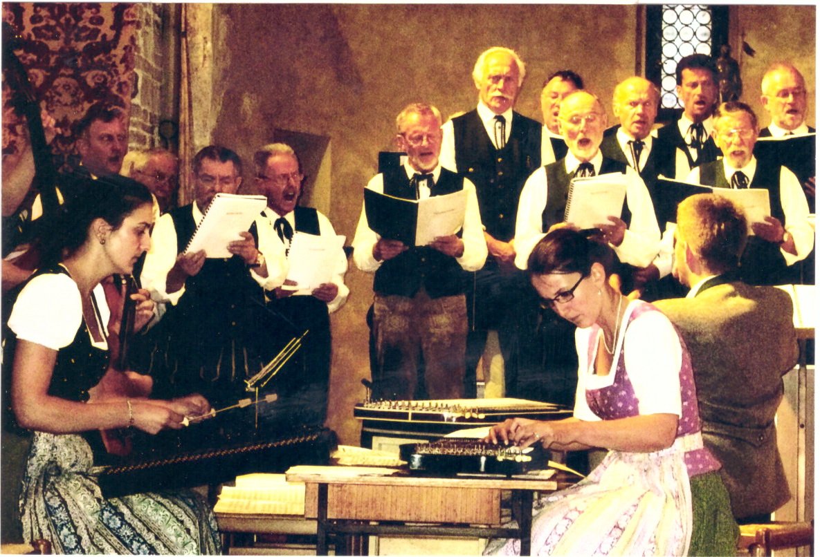 - Hittenkirchener Sänger – von links: Hans und Sepp Steinbichler – Miche Berneder – Willi Weitzel an der Zither, links Birgit Weingartner.