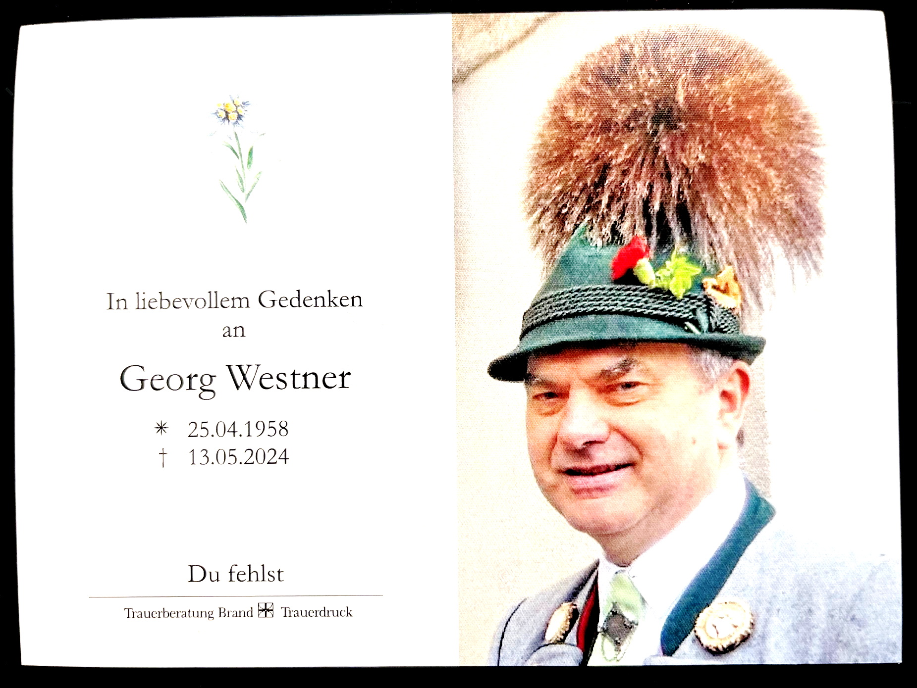 Trauer um Trachtler Georg Westner aus Amerang