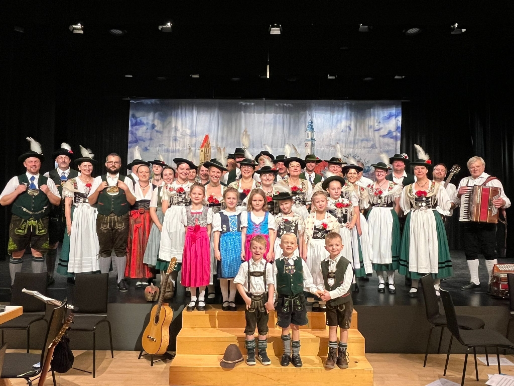Die Aktiven eröffneten den Nachmittag mit dem Laubentanz – ein Augenschmauß für die Zuschauer.Im weiteren Verlauf sorgten die Vöhringer Stubenmusik sowie die Notenhüpfer für die „leisen Töne“, etwas lauter präsentierte sich eine neu entstandene Tanzlmusik. Dazwischen brachten die Joggls mit ihren Gesangseinlagen schwäbisches Liedgut zum Klingen. Zwei gespielte Witze brachten die Lachmuskeln der Zuschauer in Bewegung. Durch eine Schnupperprobe und ein Probenwochenende im Allgäu, konnte unser Verein „kleine“ und „große“ neue Tänzer und Plattler gewinnen. Diese hatten heute ihren ersten öffentlichen Auftritt und wirkten zusammen mit den Aktiven bei Volkstänzen und Schuhplattlern mit. Dabei begeisterten die Jüngsten das Publikum mit schwäbischen Kinderliedern begleitend zum Volkstanz. Theo Span führte in bewährter Manier mit viel Humor durch das Programm.