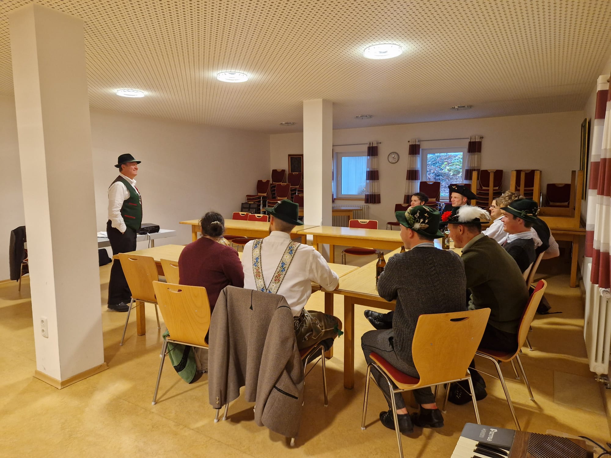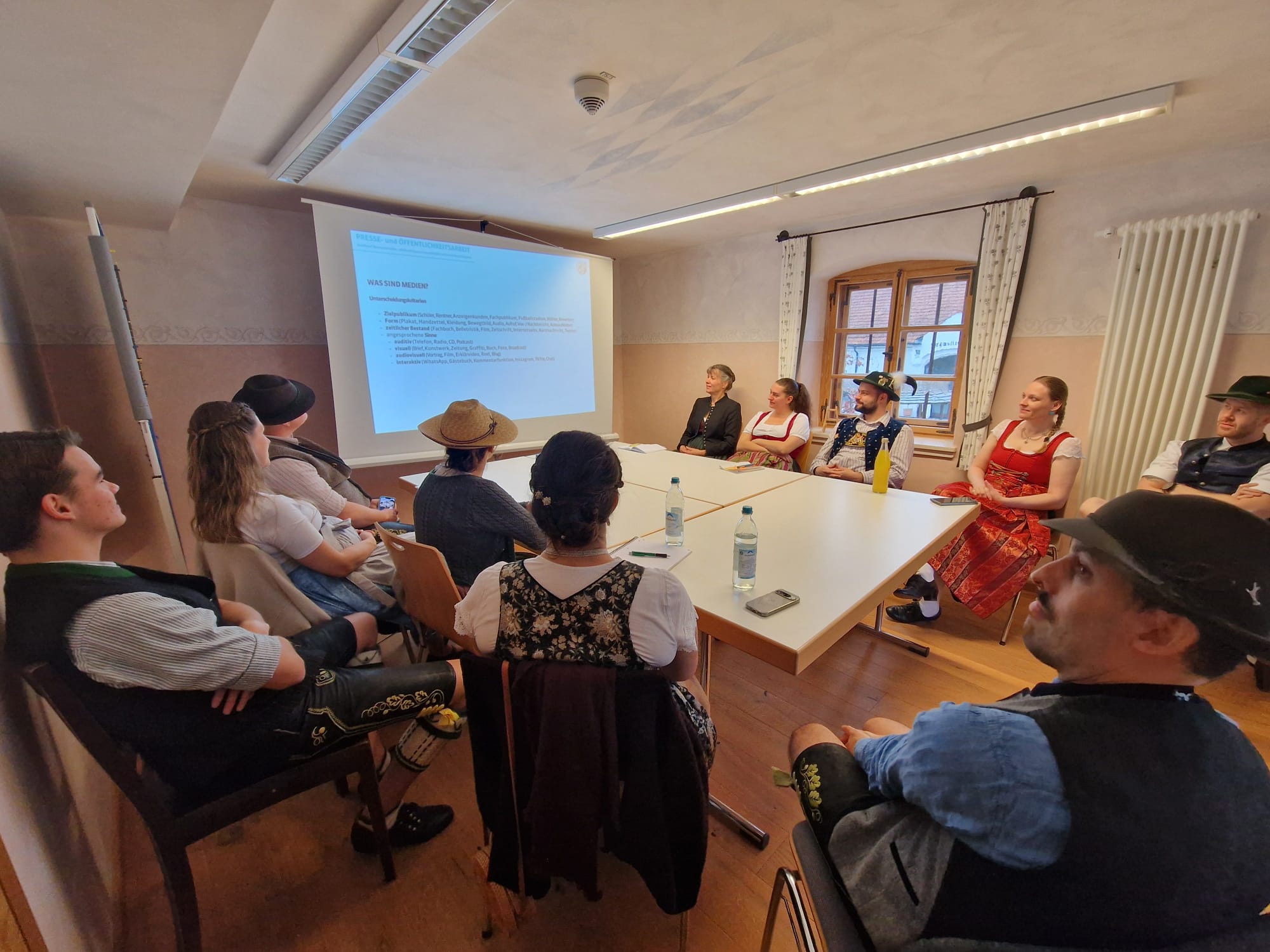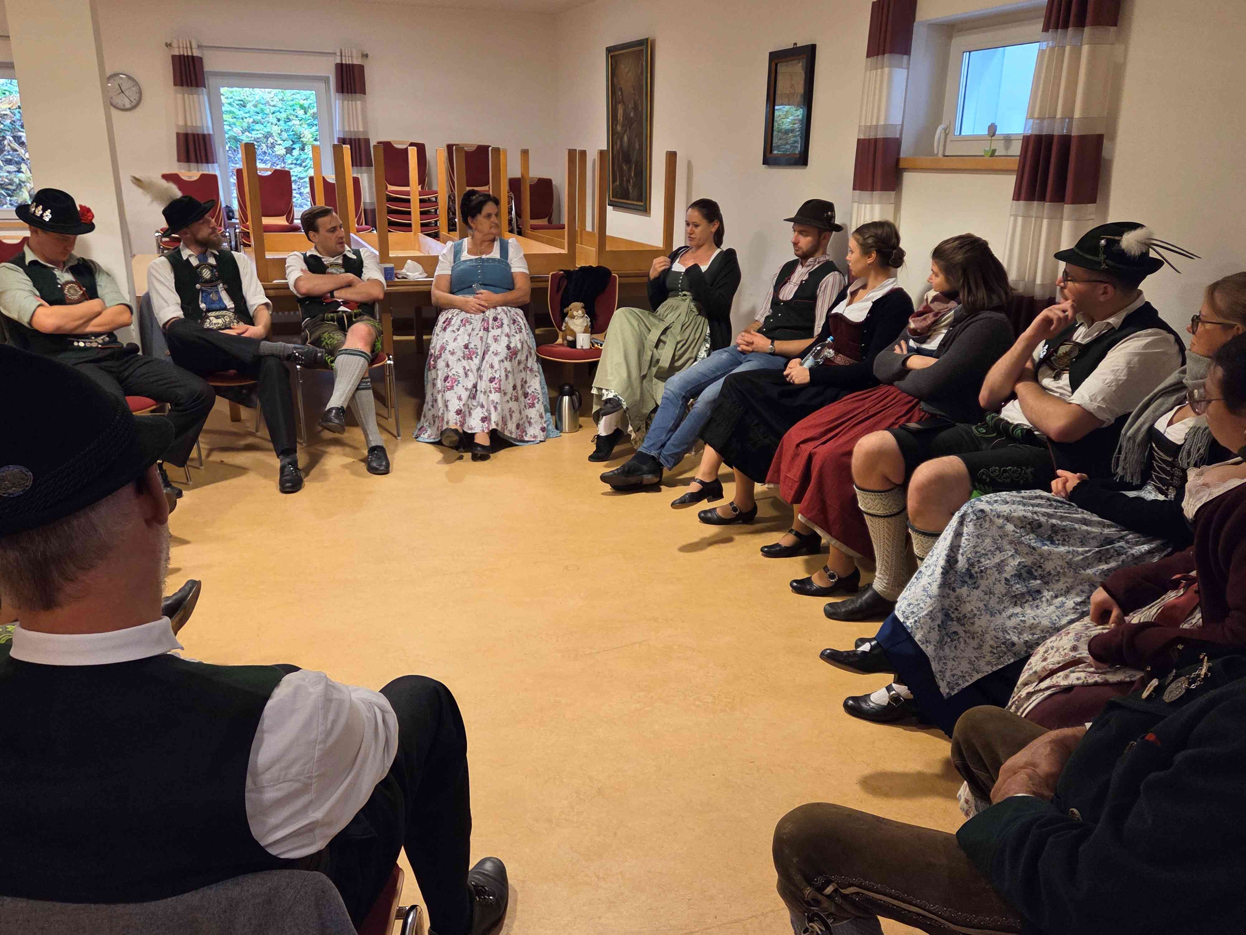Zu den Kursthemen zählten die Gestaltung einer Tanz- und Plattlerprobe mit den Sachgebiets-Vorsitzenden Matthias Wiesheu und Florian Kreß sowie Schriftführerin Hildegard Kallmaier, dazu Presse- und Öffentlichkeitsarbeit (Schwerpunkt: Darstellung trachtlerischer Inhalte in den sozialen Medien) mit Adelheid Bonnetsmüller vom Sachgebiet ‚Öffentlichkeitsarbeit‘, Motivation in den aktiven Gruppen (Ideen und Impulse) mit dem stellvertretenden Landesvorsitzenden Christian Kammerbauer, Brauchtumsvermittlung interessant gestalten mit Marianne Heidenthaler (Vorsitzende des Sachgebiets Mundart, Laienspiel und Brauchtum) und ein Theater-Blitzkurs mit Walter Sirch (früherer Vorsitzender des Sachgebiets Mundart, Laienspiel und Brauchtum). Ergänzt wurde das Angebot durch einen Rhetorik-Grundkurs und das Seminar ‚Reden schreiben mit KI (künstliche Intelligenz)‘ jeweils mit Referenten der Hanns-Seidel-Stiftung. Themen rund um das Boarische Gwand (Wann ziag I wos an…?) bot zudem die frühere Gautrachtenwartin des Gauverbandes I, Rosmarie Henke und natürlich durfte ein zünftiger Abend mit Tanzen, Plattln, Spiele, Auftritten der Hinterskirchner Aktiven und geselligem Beisammensein, schneidig umrahmt von der Oberlauser Tanzlmusi nicht fehlen.