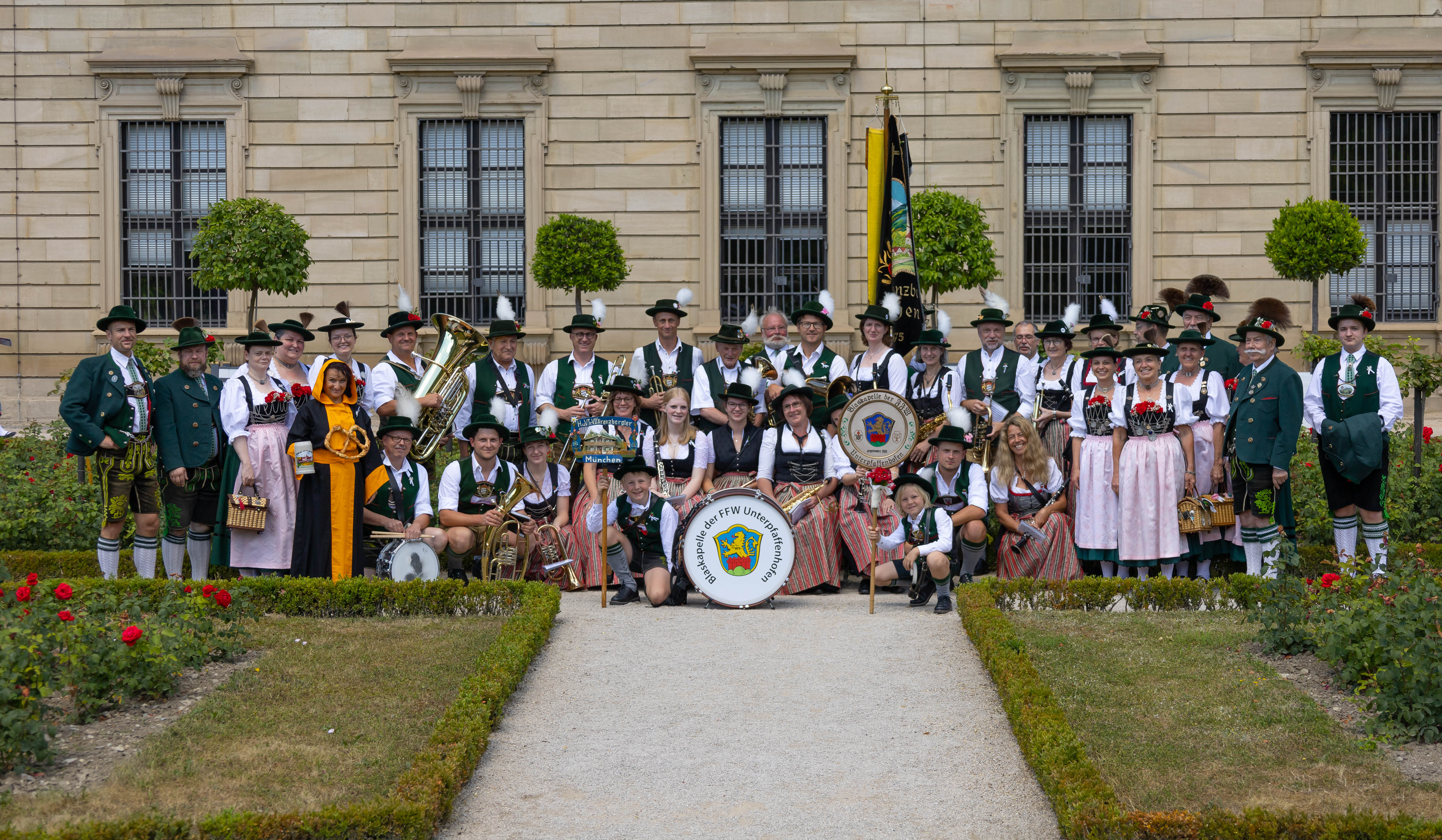 Etwas ganz Besonderes sollte es werden, schließlich feiert man nicht alle Tage das hundertjährige Bestehen eines Vereins. So entschloss man sich, ein ganzes Wochenende mit unseren lieben Trachtenkameraden in Franken, „Würzburg 03“, zu feiern. Unsere Freunde hatten ihrerseits ebenfalls etwas zu feiern: „70 Jahre Wiedergründung Heimat- und Volkstrachtenverein 1903 Würzburg e. V.“ Da traf es sich hervorragend, dass an dem gewünschten Wochenende auch noch das Kiliani Volksfest in Würzburg stattfand. Aber das reichte noch nicht. Zu unser aller Freude haben sich uns auch noch die Mitglieder der Blasmusik der Freiwilligen Feuerwehr Unterpfaffenhofen angeschlossen.