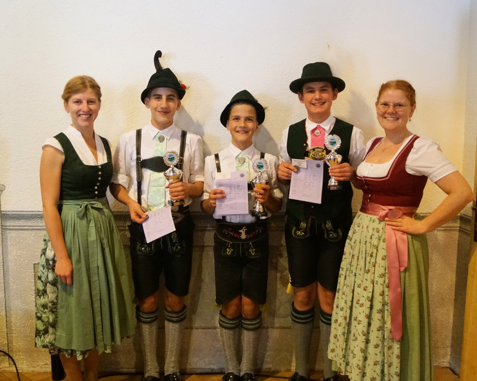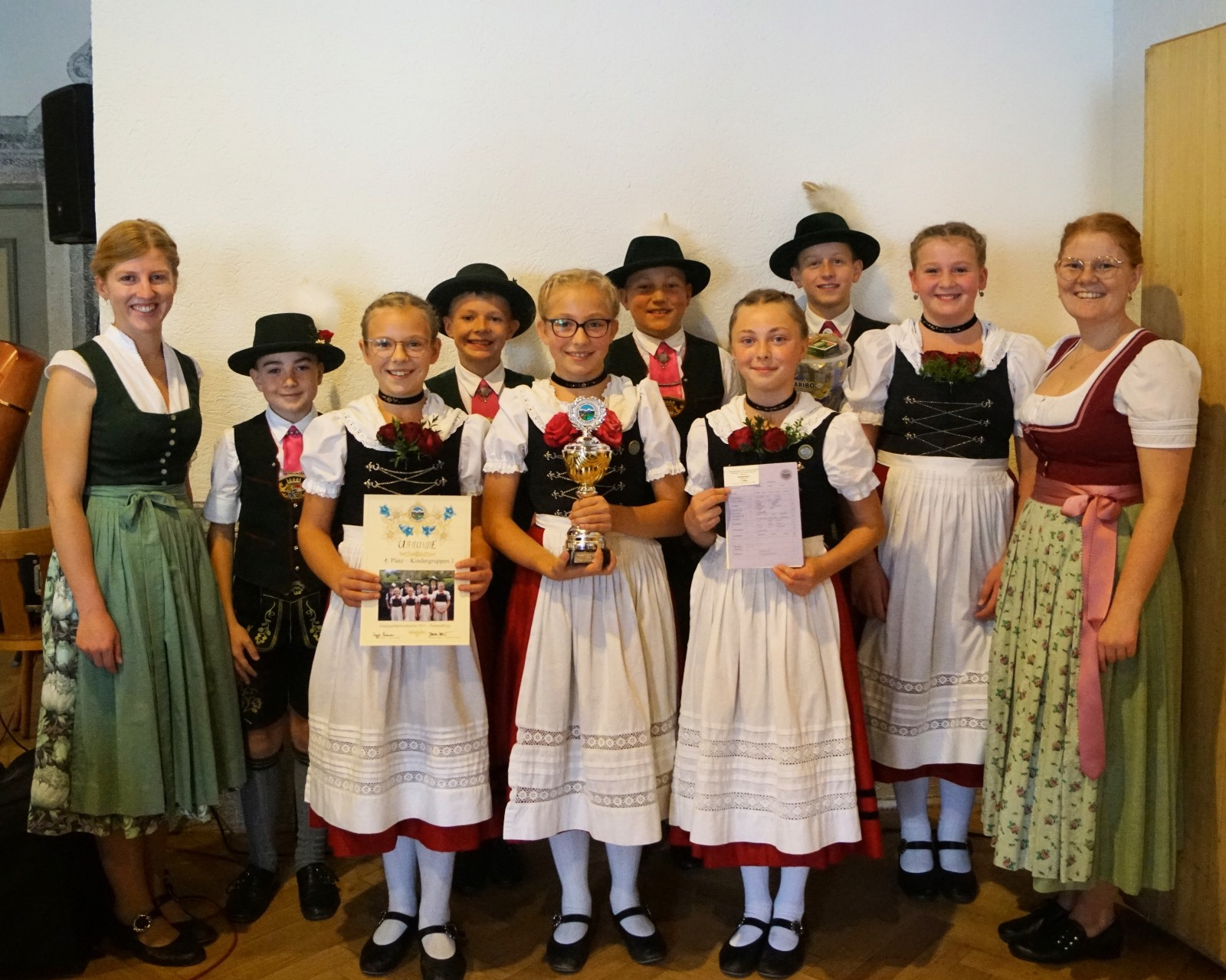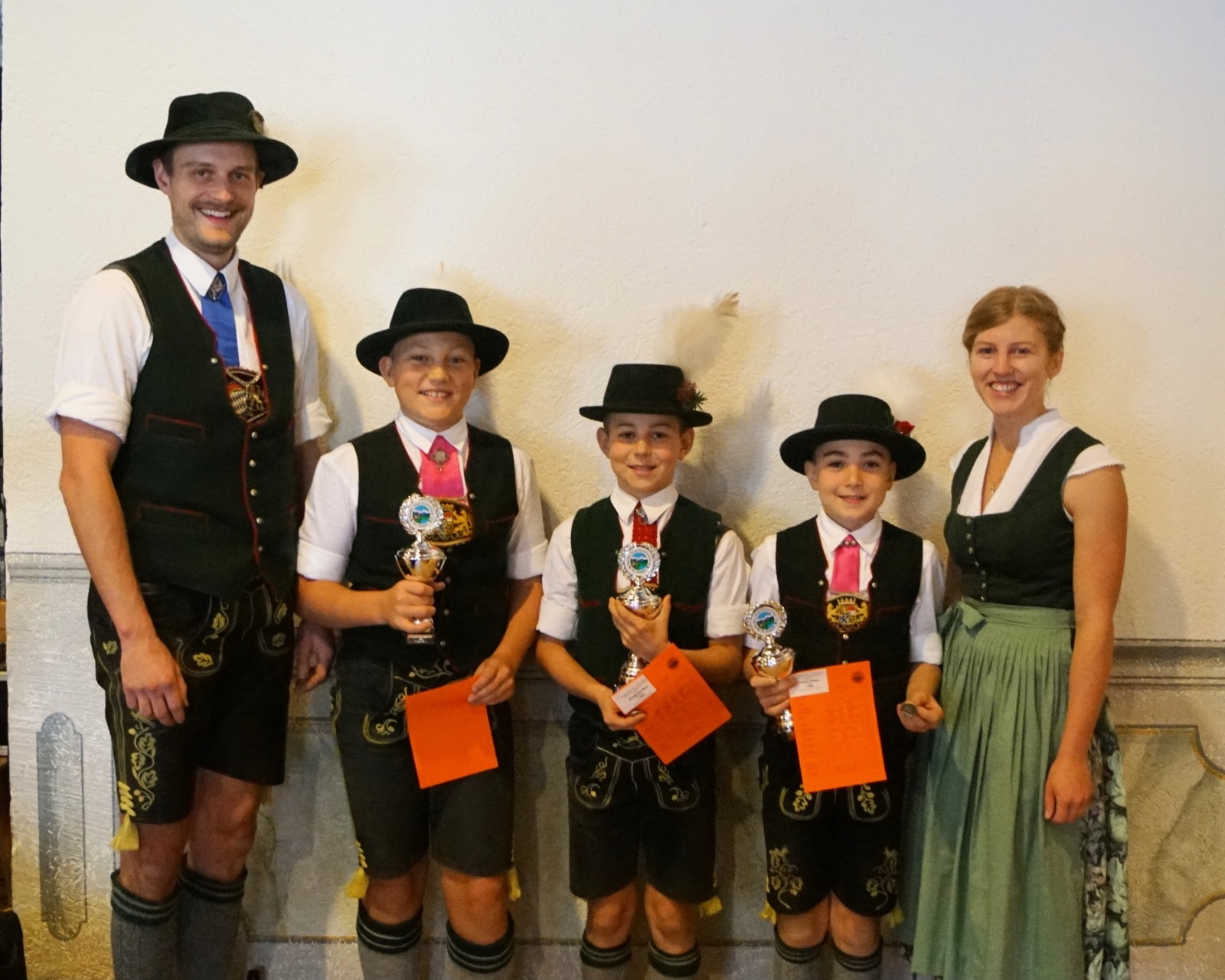 Beim Gaujugendpreisplatteln des Bayerischen Inngau-Trachtenverbandes in der Wendelsteinhalle in Brannenburg traten 88 Kinder und Jugendliche in drei Altersklassen und 15 Gruppen in zwei Altersklassen gegeneinander an.