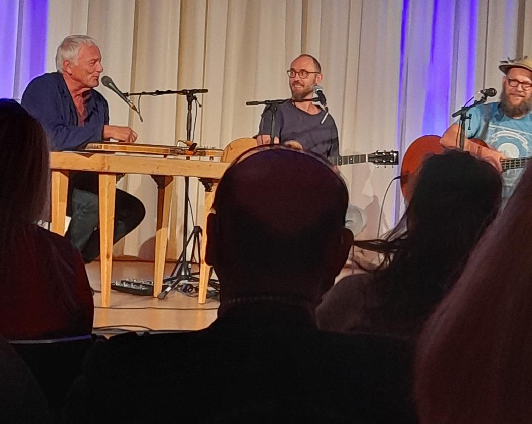 Schon am Freitagabend spielten „Isara Rapidus“ mit Brustmann – Schäfer – Horn ein „Drei-Männer-Gesang“ zu Zither, Gitarre und Bass! Sie sehen alte bay. Volkslieder als unschätzbares und schwer unterschätzbares Erbgut und spielten diese in ihrer ganzen Bandbreite mit neuen eigenen Liedern.