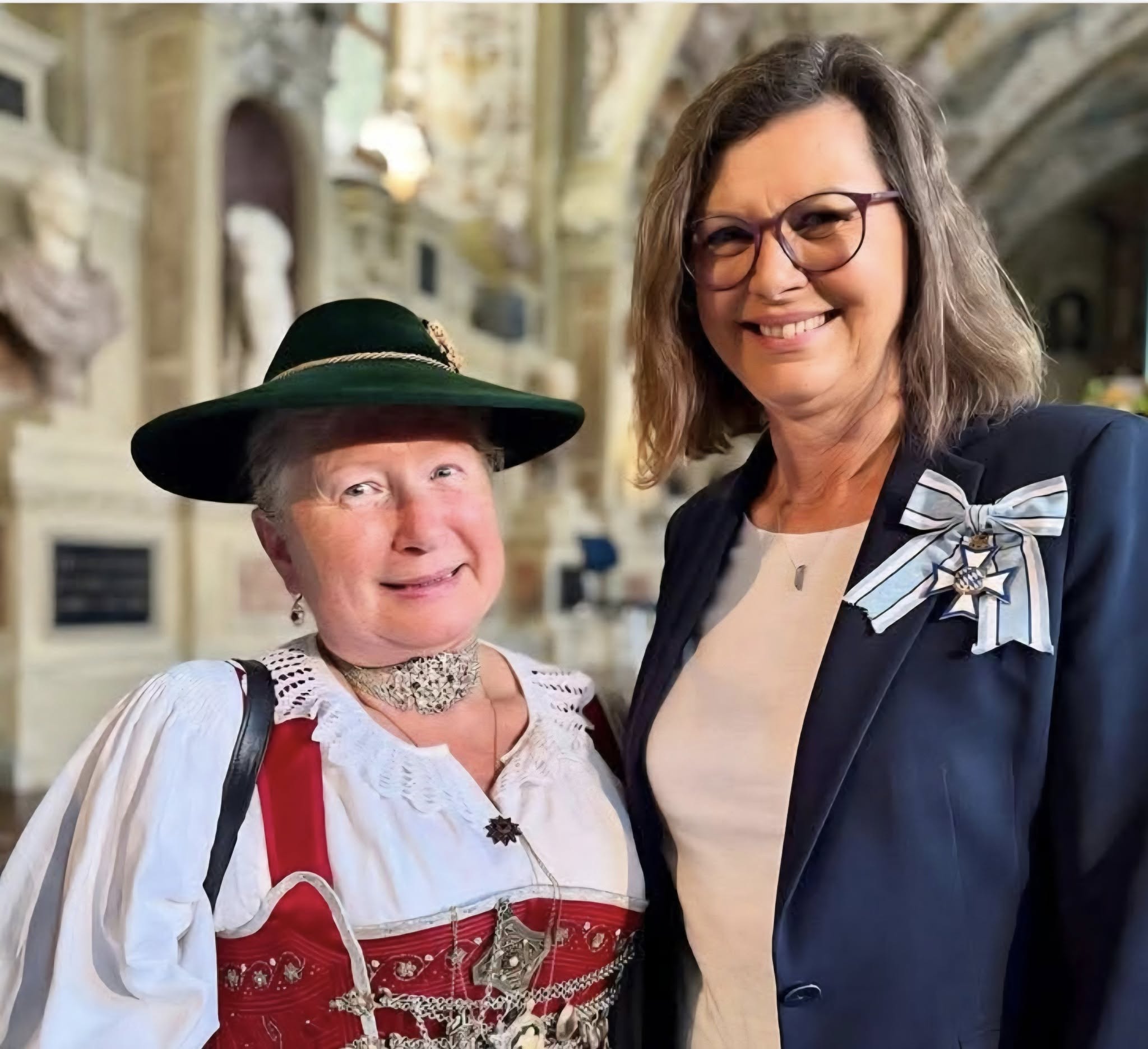 Der Ministerpräsident ehrte sie für ihren unermüdlichen Einsatz für die Trachtensache in Bayern und ihre Bemühungen das traditionelle Gwand fit für die Zukunft zu machen. Auch ihre Arbeit bei der Errichtung des Trachtenkulturmuseums würdigte Söder: