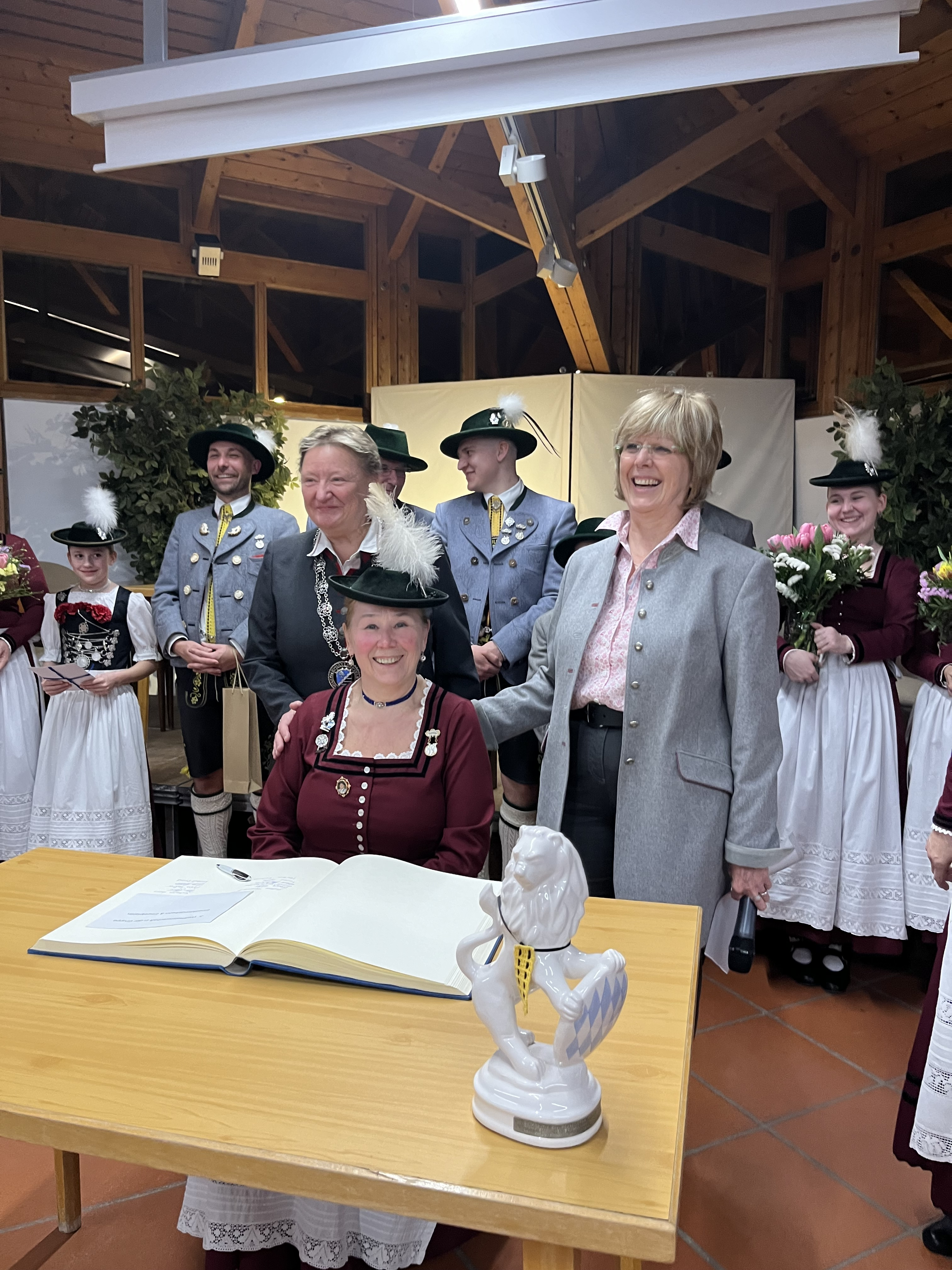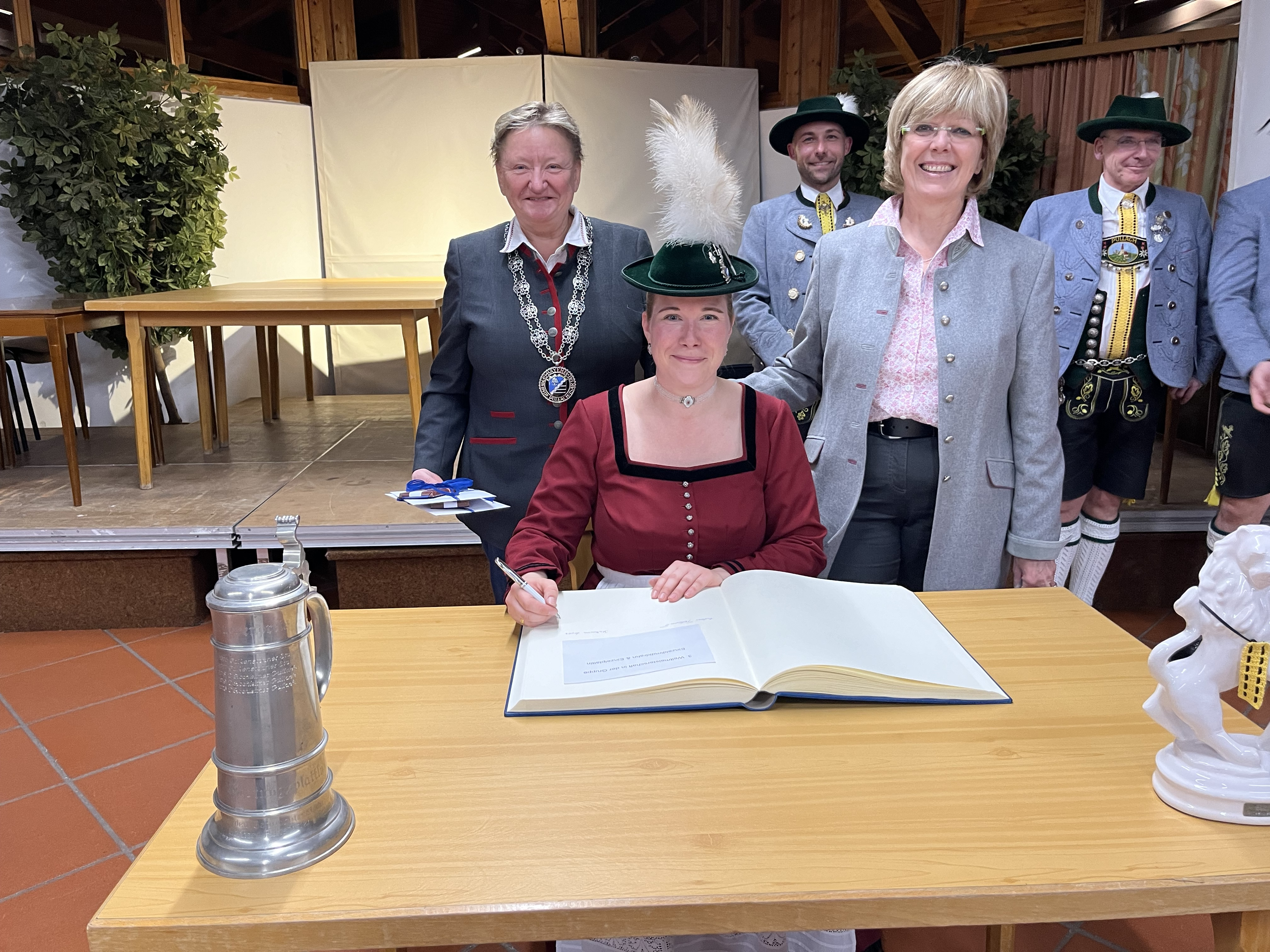 Die erste Bürgermeisterin Susanna Tausendfreund, die Vereinsreferentin Cornelia Zechmeister und der Rathauschef Heinrich Klein waren zu uns gekommen und hatten das goldene Buch der Gemeinde Pullach mitgebracht.