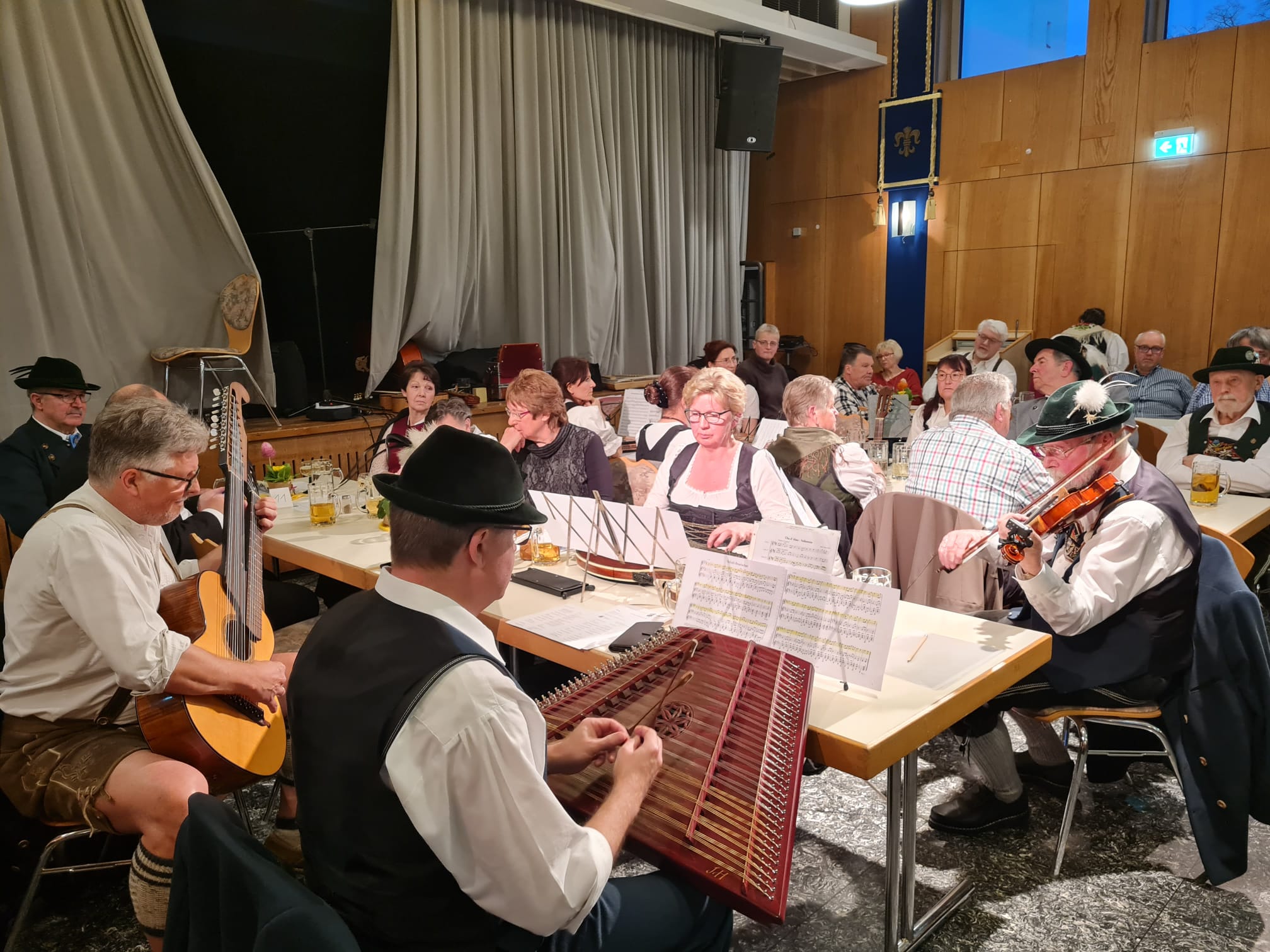 Das darauf folgende Gauvolksiedersingen war eine gelungene Veranstaltung, die sehr gut besucht war. Durch das Programm führte 1.Vereinsvorsitzende Petra Ritter. Es nahmen insgesamt 12 Musikgruppen teil, bei denen von klassischer Stubnmusi bis hin zu Sängern, Ziachspielern und Glockenspiel alles vertreten war, was das Herz begehrt. Der 2. Bürgermeister Herbert Walk aus Vöhringen richtete ein paar Grußworte an die zahlreichen Musikanten und Musikantinnen und bedankte sich bei Verein für die Gastfreundschaft, sowie ihre Arbeit. Nach dem offiziellen Teil der Veranstaltung konnten die Gäste noch den spontanen Musikstückerln der neu zusammen gefundenen Gruppen lauschen.