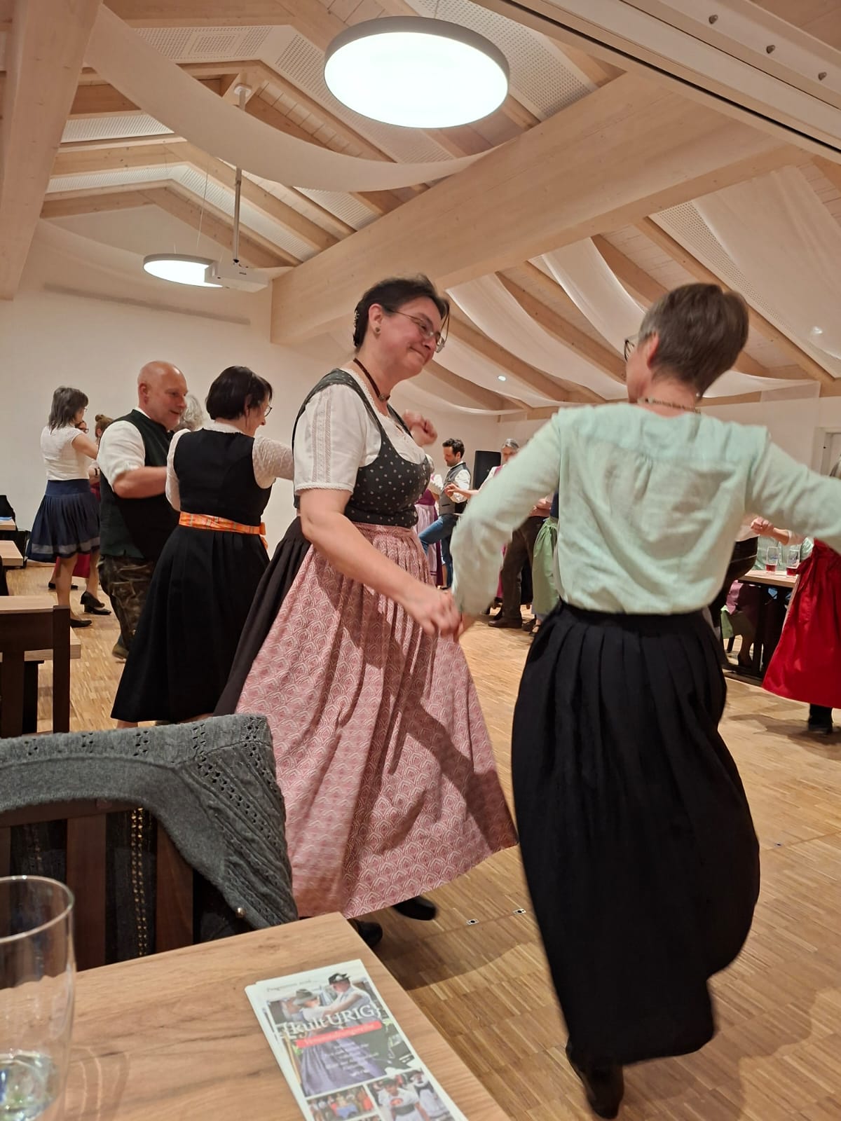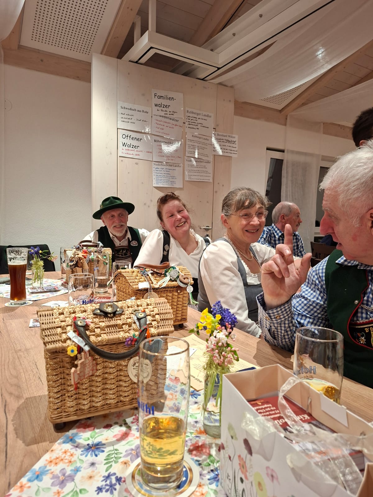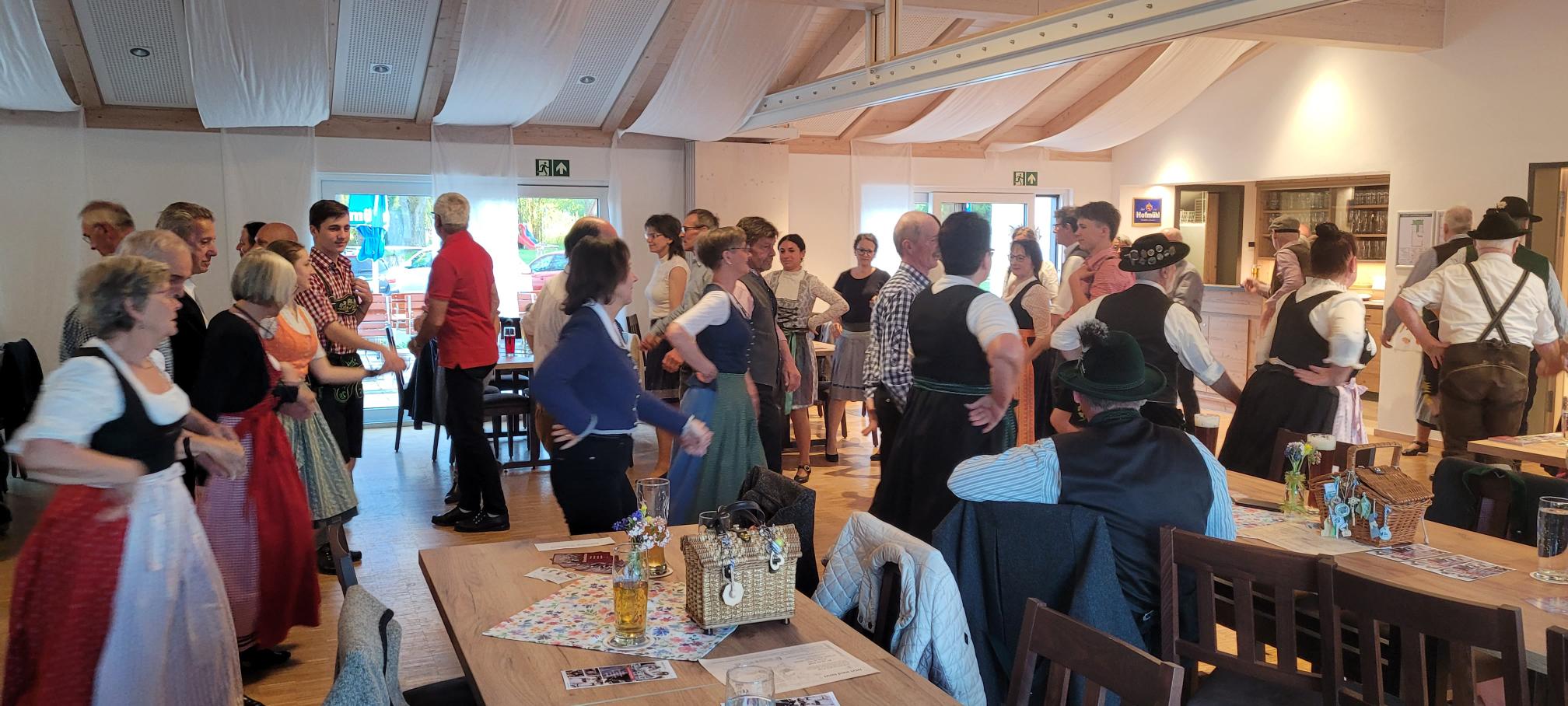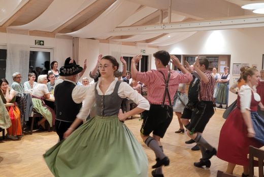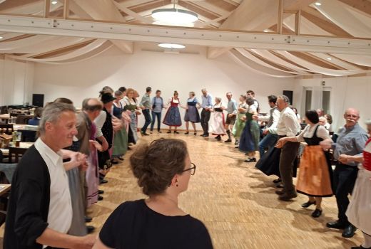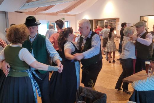 Unter der Leitung von Franziska und Barbara Straus und zur Musik von Josef erlernten sie gemeinsam die Tänze: Offener Walzer, Schwedenwalzer, Böhmerwald-Landler, Rehberger Landler, Schwedisch aus Rohr, Niederbayrischer Landler, St. Bernhards Walzer und Familienwalzer. Ein zünftiger Abend, an dem ein schneidiger Schuhplattler zwischendurch nicht fehlen durfte.