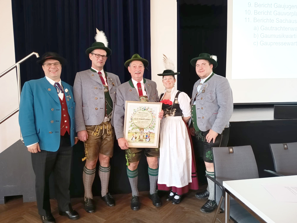 Begrüßen konnte er Gauehrenvorplattler Gerhard Ruhstorfer, Gauehrenmitglied Anderl Schweiger und Markus Hochlahner von der Bayerischen Trachtenjugend. Später kam auch noch Stadtrat Alexander Reissl, der ein Grußwort sprach.