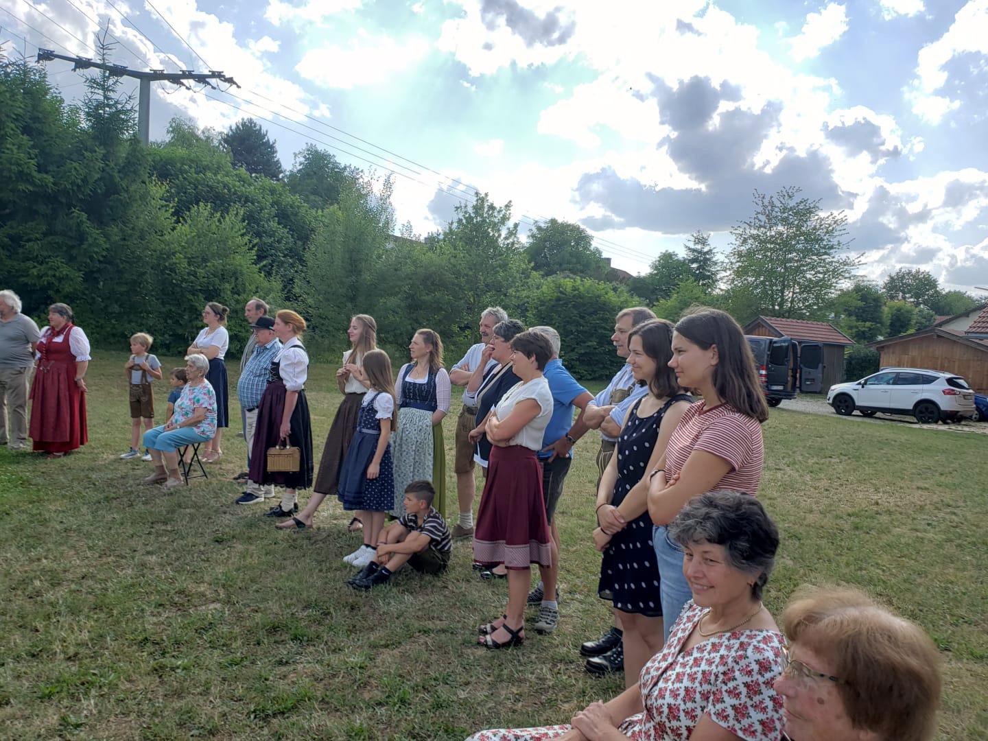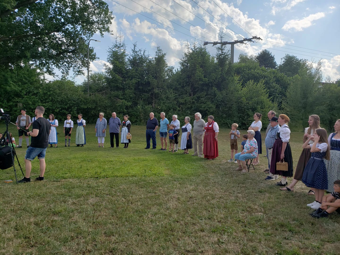So wurde kurzerhand für den 6. Juli nach Statisten gesucht und es kamen viele nach Holzhausen zum Filmdreh. Mit dabei waren "Zuschauer" mit und ohne Tracht, mit Kinderwagen und mehr -- eben ein typischer Zuschauersaum, wie man ihn beim Festzug kennt.