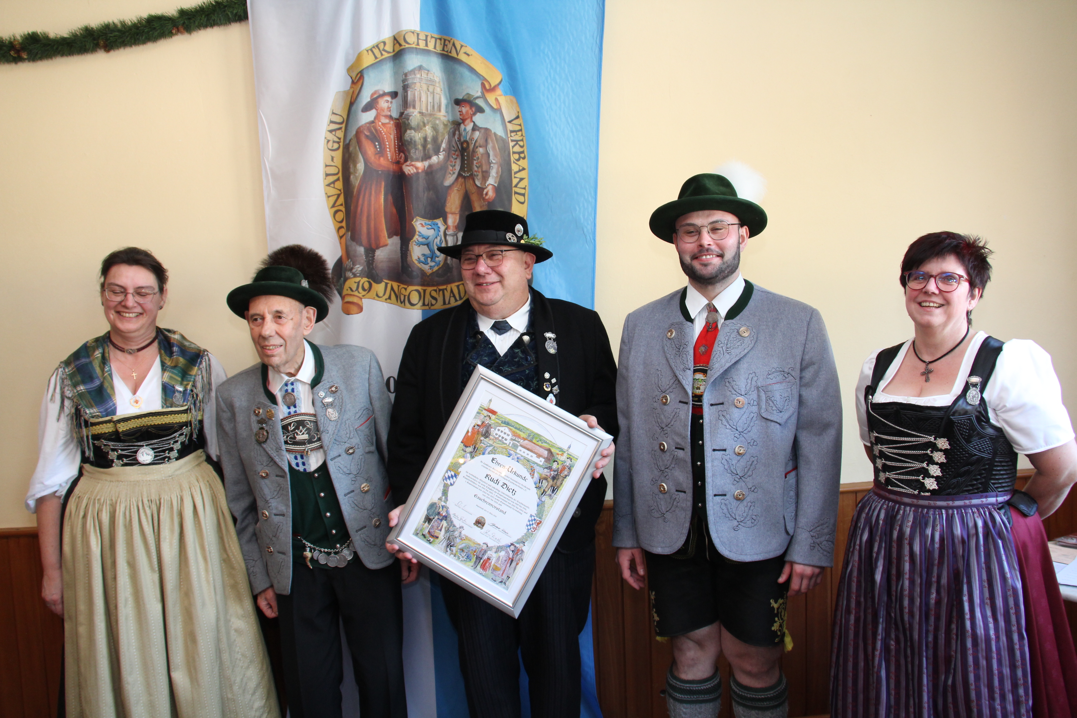 Auf Antrag des Gauehrenvorstandes des Donaugau-Trachtenverbandes, Sepp Hardt, wurde Rudi Dietz zum Gauehrenvorstand ernannt. Diese Ernennung erhielt er in Anerkennung seiner ehrenamtlichen Verdienste im Ausschuss des Donaugau-Trachtenverbandes.