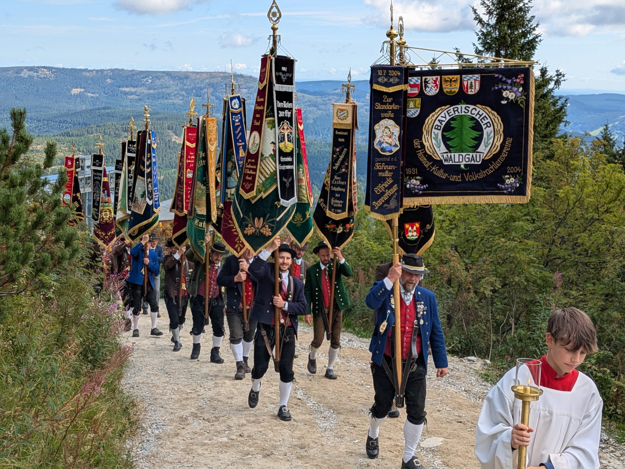 Pilger, so weit das Auge reichte, bei der 60. Arberkirchweih – Bischof Rudolf Voderholzer zelebrierte den Festgottesdienst. Andreas Tax begrüßte am Sonntag zur 60. Arberkirchweih im Namen des Bayerischen Waldgaus der Heimat-, Kultur- und Volkstrachtenvereine sowie des Bayerischen Waldvereins ein Heer von Besuchern rund um den Arbergipfel.