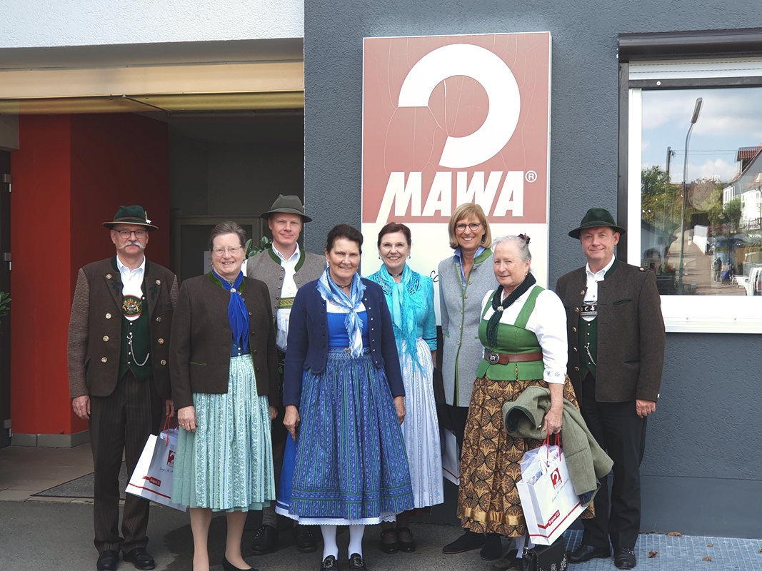 Mitglieder des Bayerischen Trachtenverbandes kamen auf Einladung von Frau Michaela Schenk zu MAWA nach Pfaffenhofen a.d.Ilm. 2007 hat Michaela Schenk als Mutter und Idealistin das insolvente Unternehmen von Martin Wagner übernommen und befeuert. Sie setzte ihre Vision, aus Kleiderbügel eine Marke zu machen, in die Tat um.