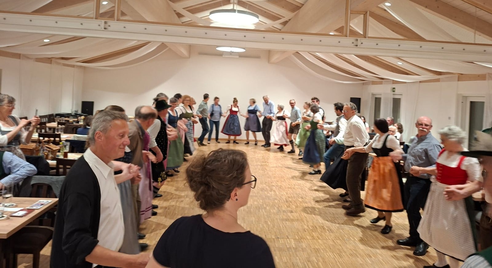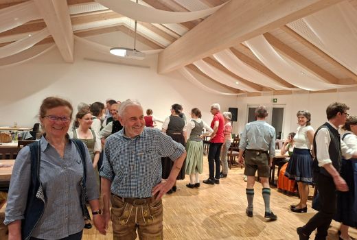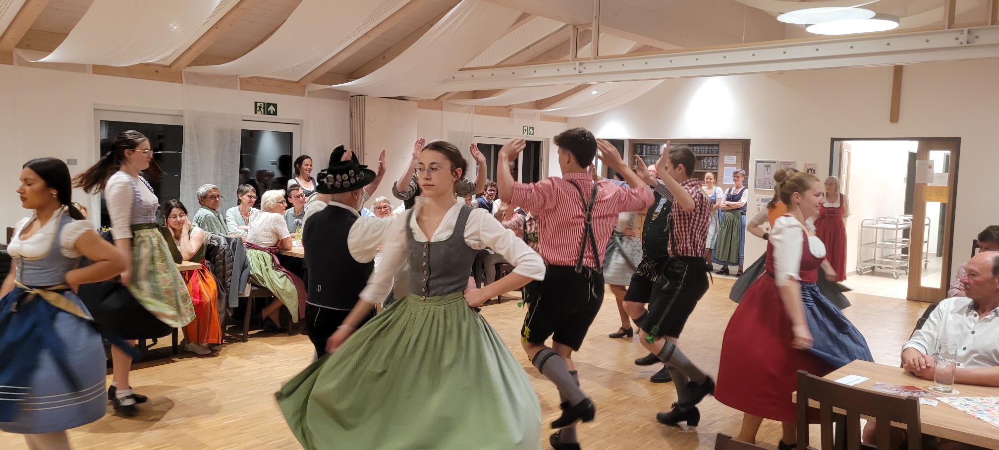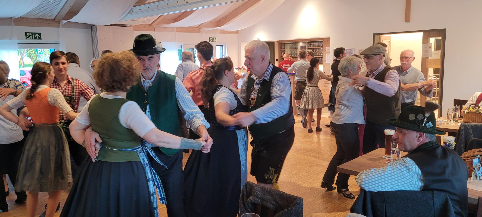 Unter der Leitung von Franziska und Barbara Straus und zur Musik von Josef erlernten sie gemeinsam die Tänze: Offener Walzer, Schwedenwalzer, Böhmerwald-Landler, Rehberger Landler, Schwedisch aus Rohr, Niederbayrischer Landler, St. Bernhards Walzer und Familienwalzer. Ein zünftiger Abend, an dem ein schneidiger Schuhplattler zwischendurch nicht fehlen durfte.