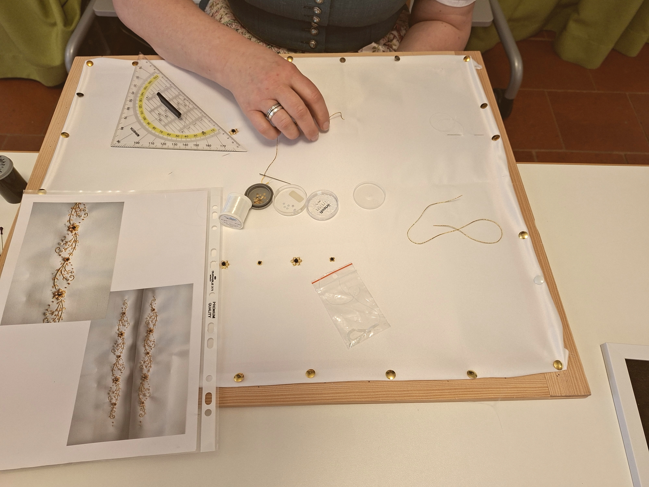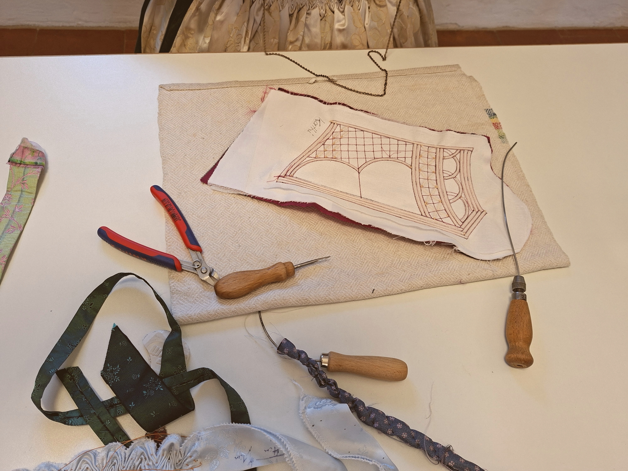 Zur Sonderausstellung „Heimat und Dirndl“ im Trachtenkulturzentrum Holzhausen gab es am 18. April einen Aktionstag. Dabei konnte zahlreichen Handwerkern über die Schultern geschaut werden und sie stellten ihre Arbeit vor: Miederherstellung, Goldstickerei, Rüschenanfertigung, Smokstickerei. Informationen wurden gegeben und Fragen zu einzelnen Arbeitsgängen wurden beantwortet. Zu guter Letzt konnten sich die Deandl schöne Anregungen zu Dirndl-Frisuren holen oder auch für den Abend „aufbrezeln“ lassen.