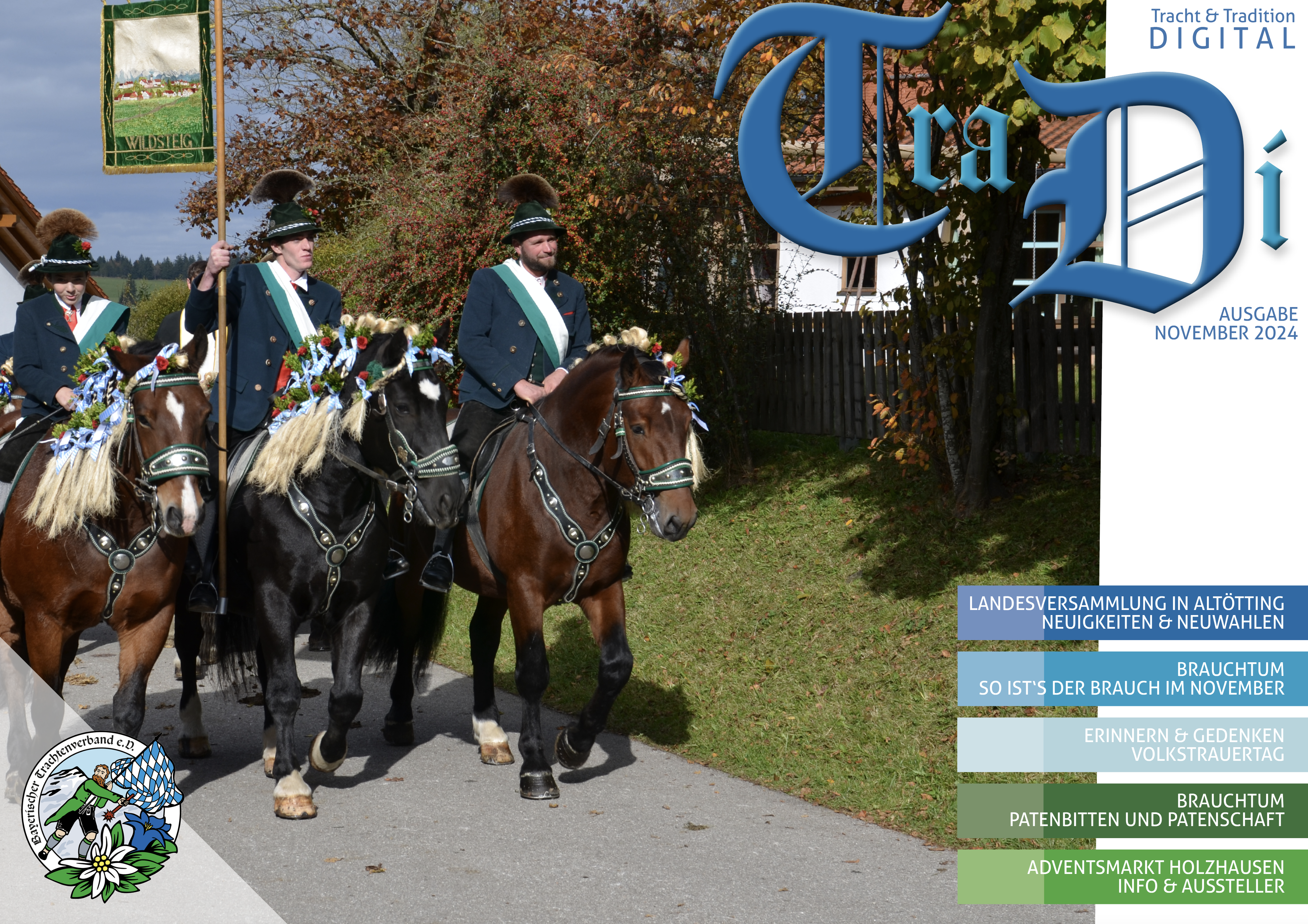 Während der Landestagung des Bayerischen Trachtenverbandes in Altötting (Gauverband 1) gab es am 13. Oktober 2024 Neuwahlen. Erster Landesvorsitzender Günter Frey (Oberer Lechgau) und seine drei Stellvertreter wurden wieder im Amt bestätigt: Erich Tahedl (Gauverband Oberpfalz), Pankraz Perfler (Bayerischer Inngau) und Christian Kammerbauer (Gauverband I).