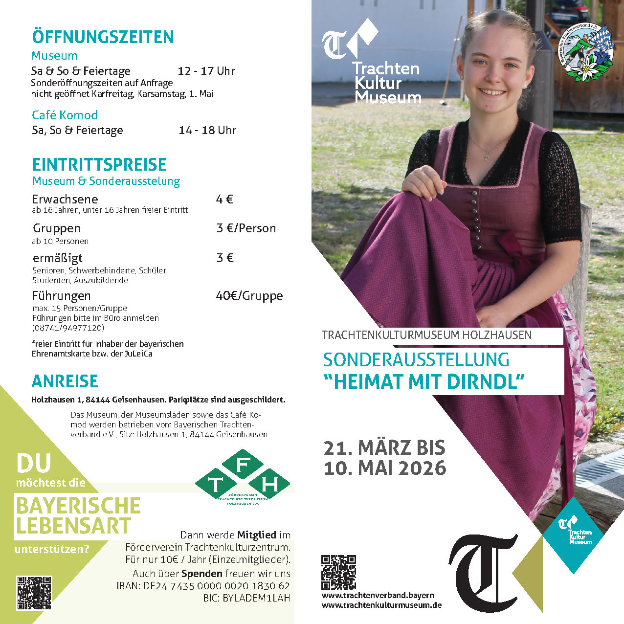 Kaum ein Kleidungsstück steht mehr für Bayerische Tradition als das Dirndlgwand. Es ist gleichzeitig Arbeitskleid, Alltagsgewand und Festgewand. Was verbirgt sich hinter diesem Kleid? Das Dirndl ist Ausdruck eines besonderen Lebensgefühls und ein Kleidungsstück mit viel Charme. Die Ausstellung zeigt die Geschichte des Dirndls, die Entwicklung in den einzelnen Epochen vom Arbeitskleid bis zum modischen Erscheinungsbild.