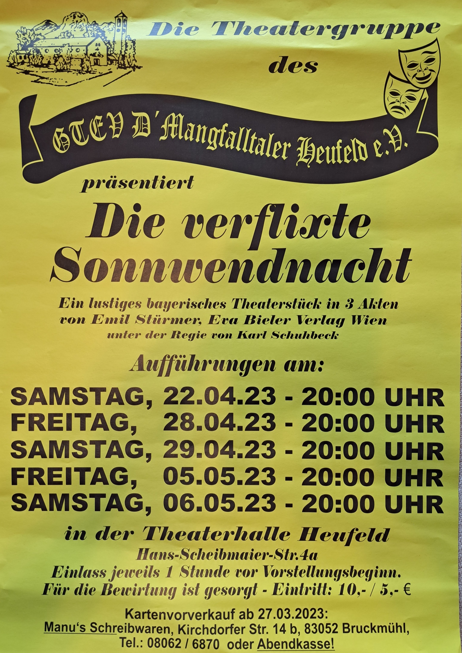 Mangfalltaler Heufeld: Theateraufführung "Die verflixte Sonnwendnacht"