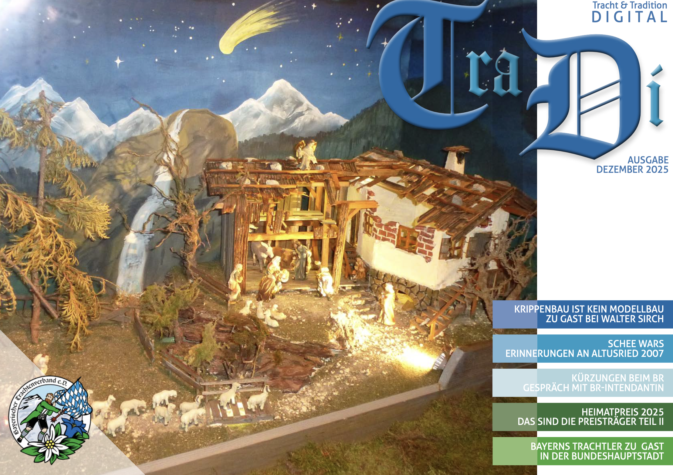 Der TraDi informiert zu jedem Monatsbeginn über Neuigkeiten im Bayerischen Trachtenverband, gibt Euch Hintergrundinformationen zu unserem Brauchtum in ganz Bayern oder empfiehlt Euch Bücher, gibt Euch Rezept- oder Bastelideen, die zur Jahreszeit und zu unseren Traditionen passen. Er ist bequem über die Webseite des Bayerischen Trachtenverbandes www.trachtenverband-bayern.de abrufbar. Wenn eine neue Ausgabe vorliegt, erfahrt ihr das über unsere Webseite oder unseren Profilen auf Facebook oder Instagram.